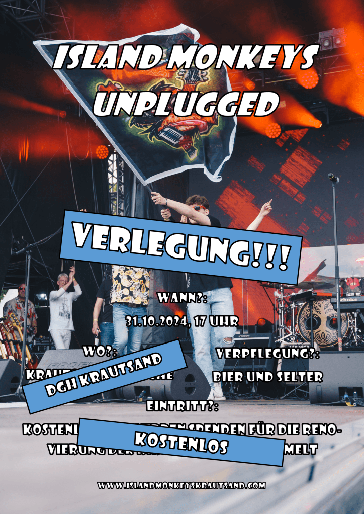 Neuigkeiten!!! – Aufgrund der Renovierungsarbeiten in der Kirche spielen wir unseren Unplugged-Gig dieses Jahr im DGH Krautsand. Der Termin am 31.10.2024 um 17 Uhr bleibt aber bestehen.